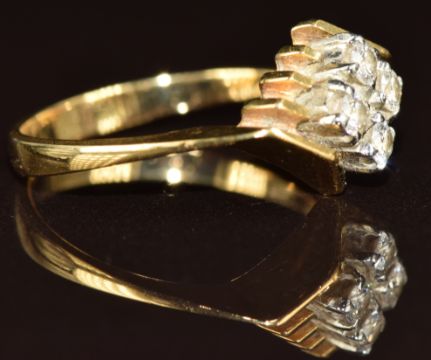 An 18ct gold ring set with four diamonds, 3.7g, size L