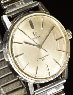 Omega Seamaster 600 gentleman's wristwatch ref. 135.011 with steel hands and baton hour markers, silver dial, stainless steel case and signed 17 jewel calibre 601 movement, on expanding metal bracelet, case diameter 34mm, serial number 23697269.