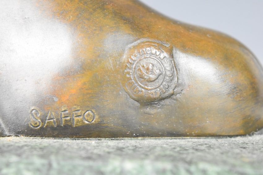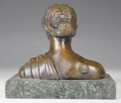 Bronze bust of Saffo with foundry mark verso, height 17cm