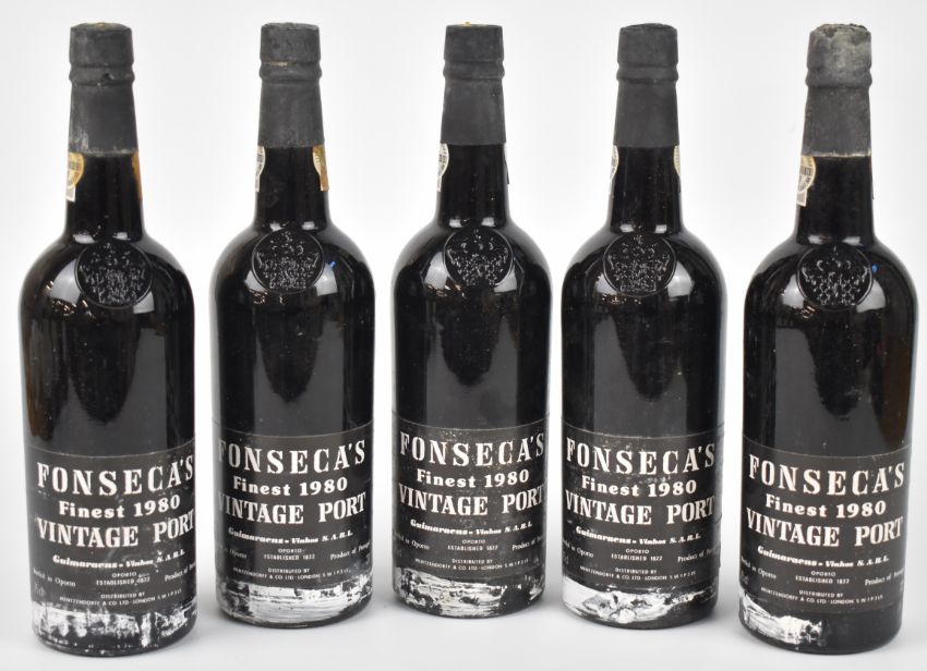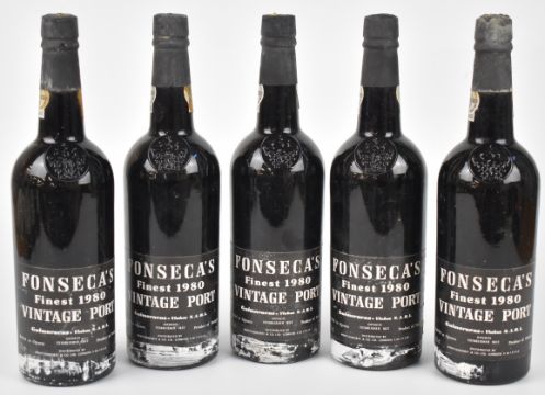 Five bottles of Fonseca's Vintage Port, 1980, 75cl, 21% vol. PLEASE NOTE ALL ALCOHOL & TOBACCO ITEMS ARE SUBJECT TO OVER 18 CHECK ON COLLECTION OR DELIVERY