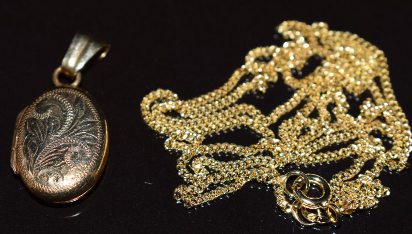 A 9ct gold pendant depicting a ram for Aries, 9ct gold chain and 9ct gold locket, 6.8g