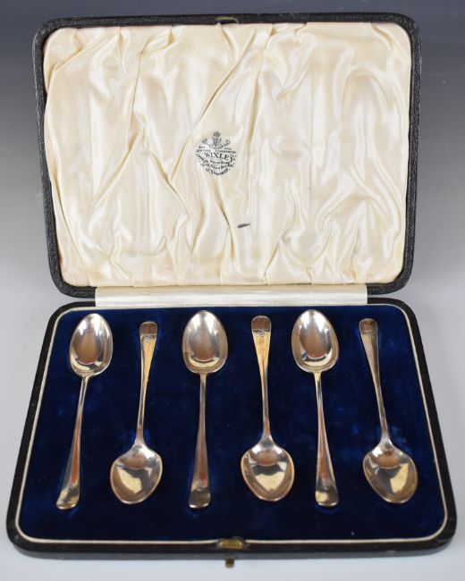 Cased set of six Edward VII hallmarked silver Hanoverian rat rail pattern teaspoons, Sheffield 1907, maker Joseph Rodgers & Sons, length 11cm, weight 94g, the case marked A.Wixey Gt. Yarmouth to inside of lid, width 19.5cm