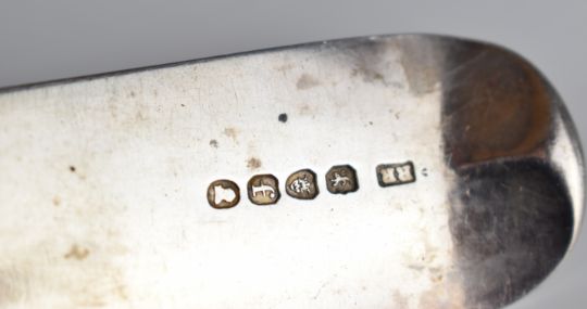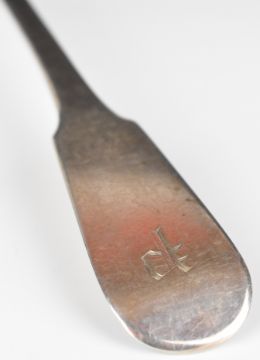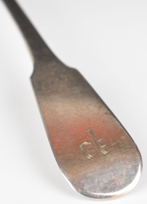 Georgian hallmarked silver fiddle pattern basting spoon, London 1821, maker Robert Rutland, length 30cm, weight 106g