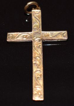 Edwardian 9ct gold pendant set with garnets and seed pearls on 9ct gold chain (6.2g), 9ct gold back and front locket on Victorian yellow metal chain, 9ct rose gold cross with chased decoration (0.5g)