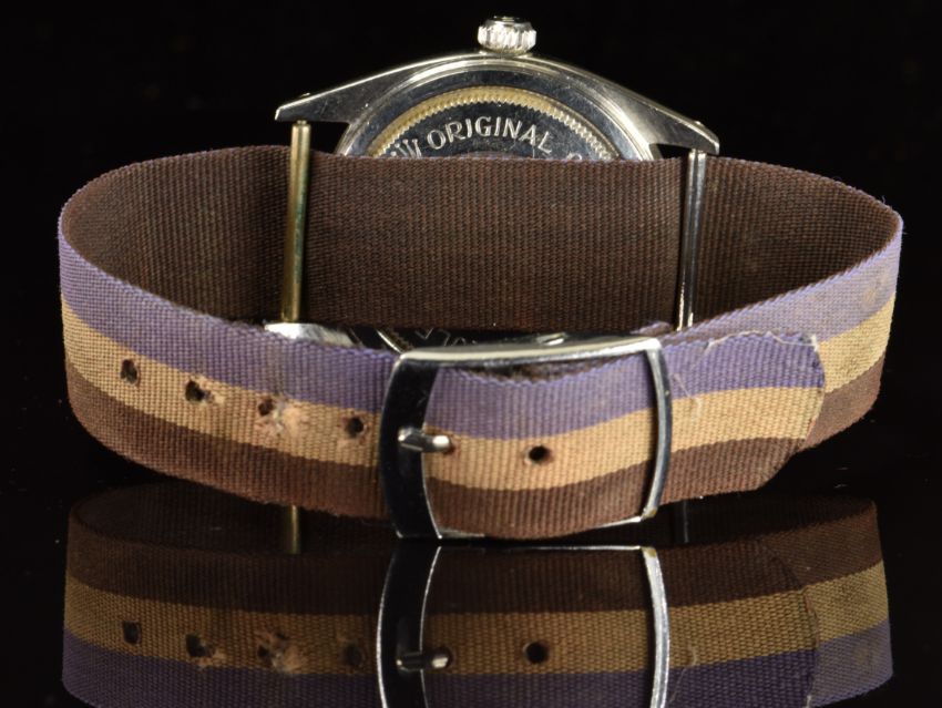 Tudor Oyster Prince gentleman's automatic wristwatch ref. 7965 with luminous hands, steel hour markers, silver dial, stainless steel case marked 'Original Oyster Case by Rolex Geneva' and signed Tudor Auto-Prince 25 jewel movement, on NATO style canvas strap, case diameter 34mm, serial number 318292.