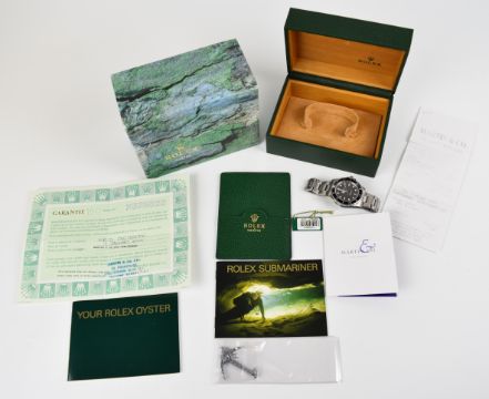 Rolex Oyster perpetual Submariner gentleman's wristwatch ref. 14060M with luminous hands and hour markers, black dial and bezel, stainless steel case and signed calibre 3130 movement, on stainless steel bracelet, case diameter 40mm, serial number Y339822, 2002, in original box with guarantee, related paperwork, tags and outer box.