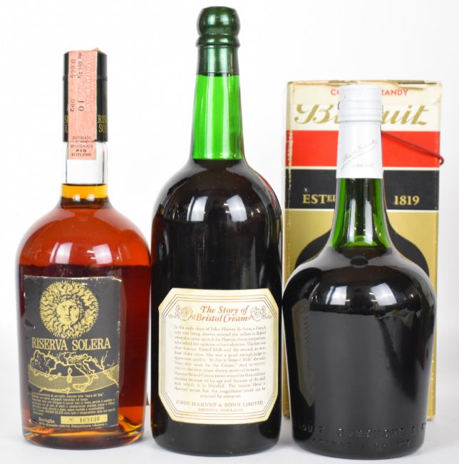 Seven bottles of Cognac, Sherry and Vermouth to include Bisquit VSOP Cognac 24fl oz, 70 proof. PLEASE NOTE ALL ALCOHOL & TOBACCO ITEMS ARE SUBJECT TO OVER 18 CHECK ON COLLECTION OR DELIVERY