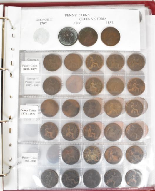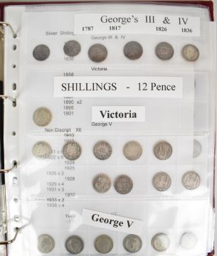 An amateur UK coin collection George III onwards, includes silver content, George III sixpences, Queen Victoria Gothic florins, Heaton Mint halfpennies etc