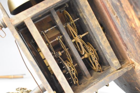 Joseph Wehrle German or similar dial wall clock, with wooden bar style movement, marked to rear with indistinct maker's mark, striking on a bell, diameter 34cm