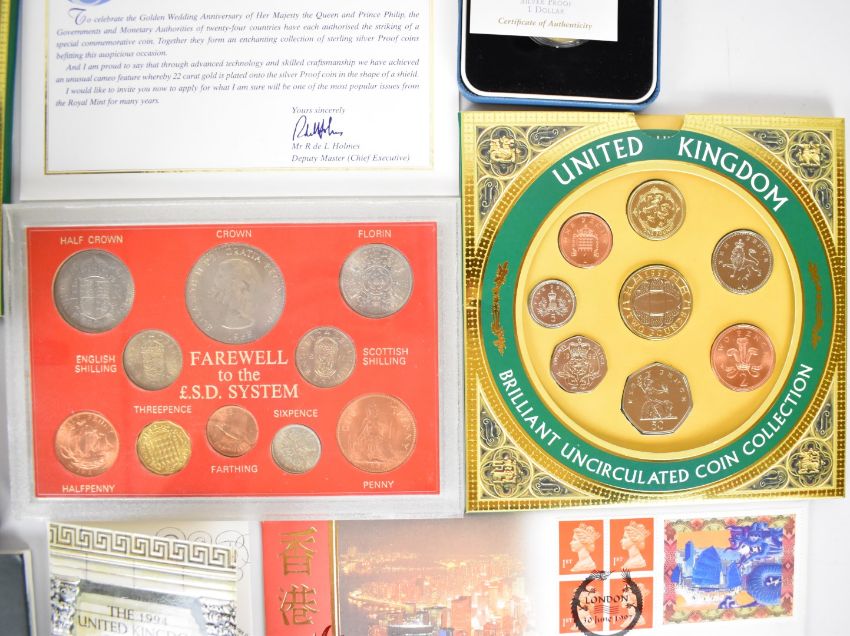 Royal Mint three cased silver proof coins comprising 1999 £2 Rugby World Cup, Barbados $1, 40th Anniversary of the Coronation of Queen Elizabeth II and a collection of coin presentation packs