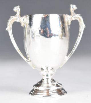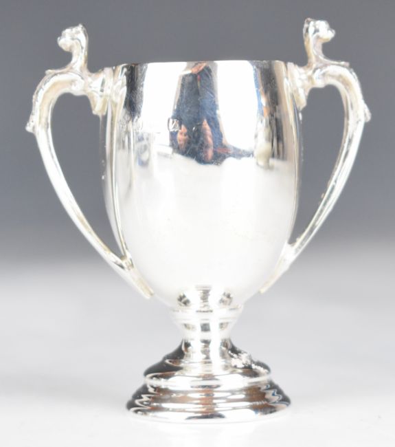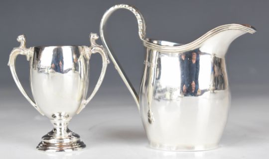 George V hallmarked silver milk jug, Chester 1932, maker S Blanckensee & Son Ltd, height 8.5cm, together with a small hallmarked silver twin handled trophy cup, weight of both 96g