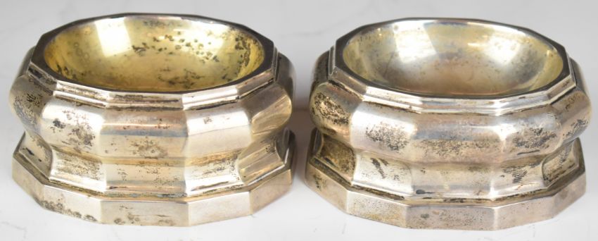 Pair of German silver salts with 925 grade silver marks, length 8cm, weight 270g