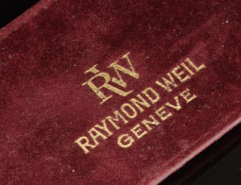 Raymond Weil wristwatch ref. 112 with gold dauphine hands, black dial, 18ct gold plated case and quartz movement, on black crocodile leather strap, case diameter 31mm, in original pouch.