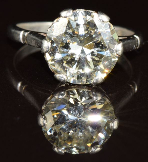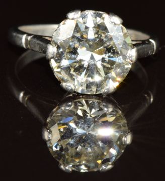 Art Deco platinum ring set with a transitional cut diamond of approximately 3.25ct, 4.7g, size J