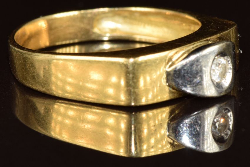 An 18ct gold ring set with a diamond in a white gold setting, 4.6g, size S