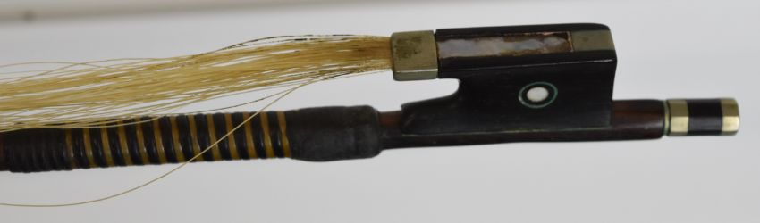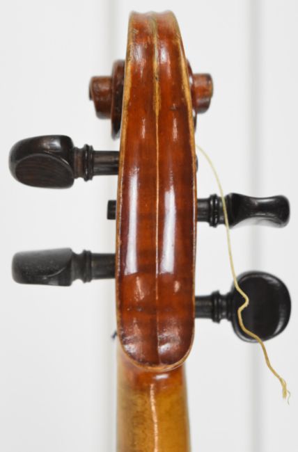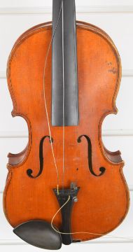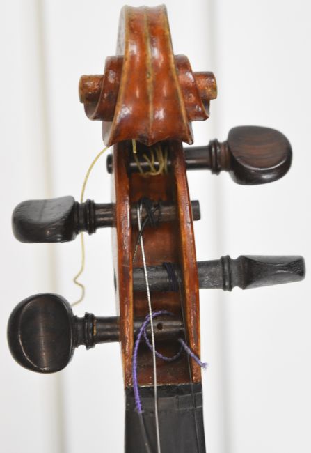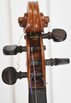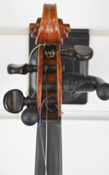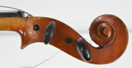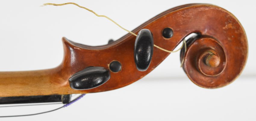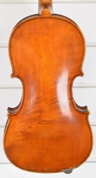 Unnamed 19th century violin with 35.5cm single piece back, in fitted case with bow