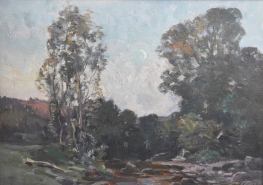 Alexander Carruthers Gould (1870-1948) pair of oil on board Exmoor river landscapes, both signed lower right 24 x 34cm, in ornate gilt frames