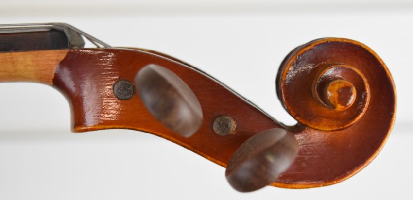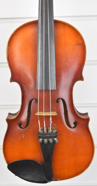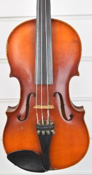 Early 20th century violin labelled 'Berini', with 33.4cm two piece back, in hard case with bow