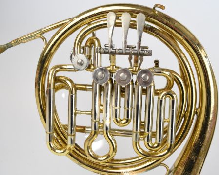 French horn by Anborg of Como, Italy supplied by Paxman, in hard case