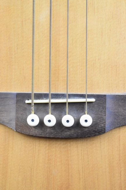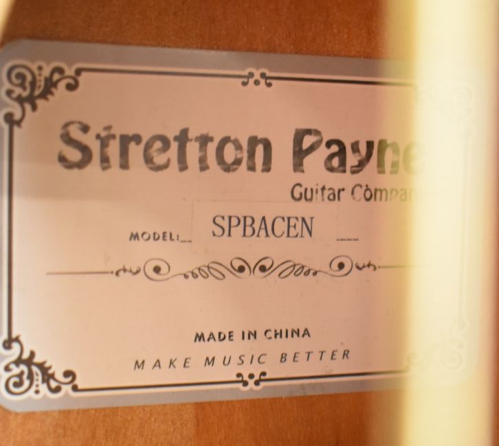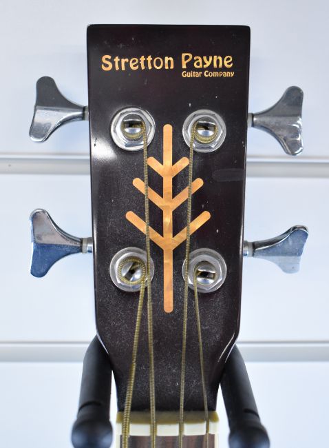 Stretton Payne Spabacen electro-acoustic bass guitar with faux ivory and line inlaid decoration