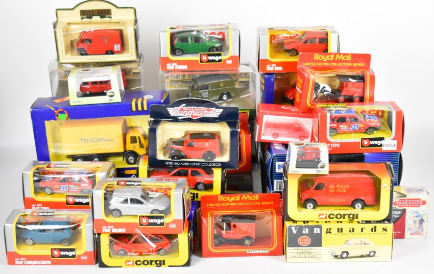 A collection of Corgi, Oxford, Burago and similar diecast model cars, trucks etc, to include Royal Mail and Post Office related vehicles