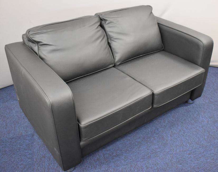 Boss Design Boxer black leather two seater sofa, length 146cm