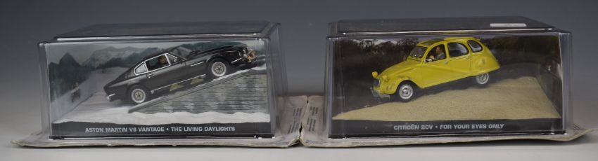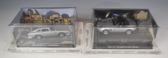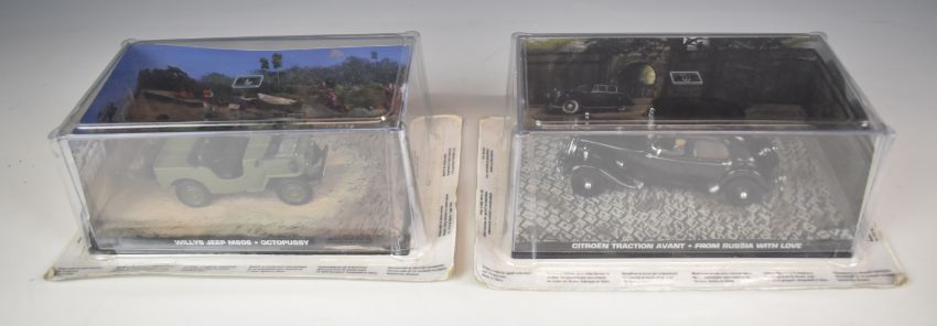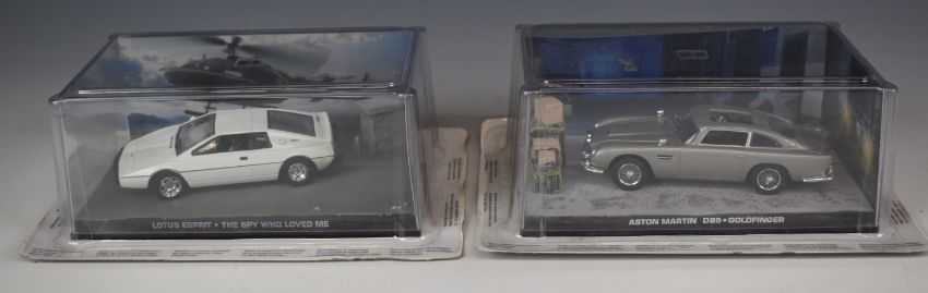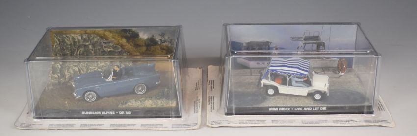 Fifteen GE Fabbri Ltd 007 James Bond diecast model cars including vehicles from Octopussy, The Spy Who Loved Me, Thunderball, Dr. No etc, all in sealed plastic display cases.