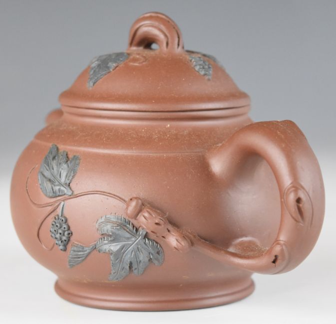 Two Chinese Yixing pottery teapots, each with four character seal mark to base, largest 10cm tall.