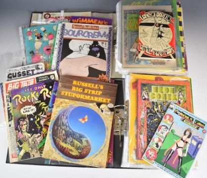 A collection of underground adult humour and subculture comics / magazines to include Fat Freddy's Cat, The Fabulous Furry Freak Brothers, Sourcream, The Lone Groovers, Wimmen's Comix, Pork Roasts, Gusset, Watermelon and Kak.