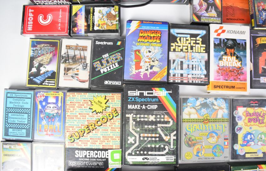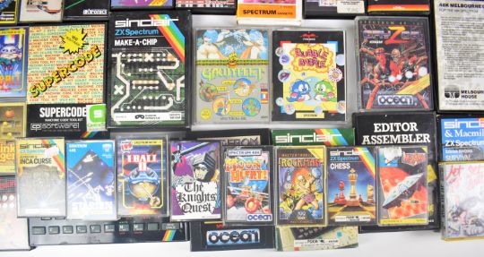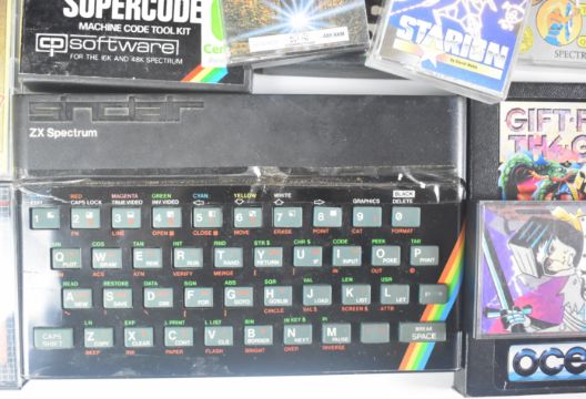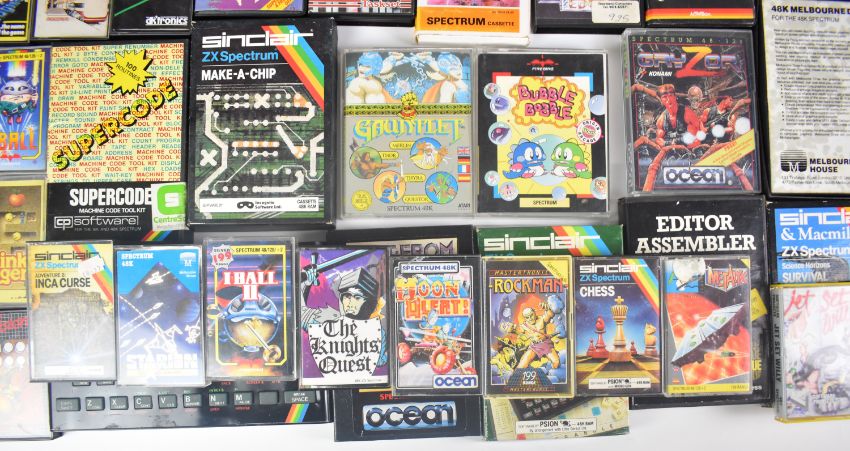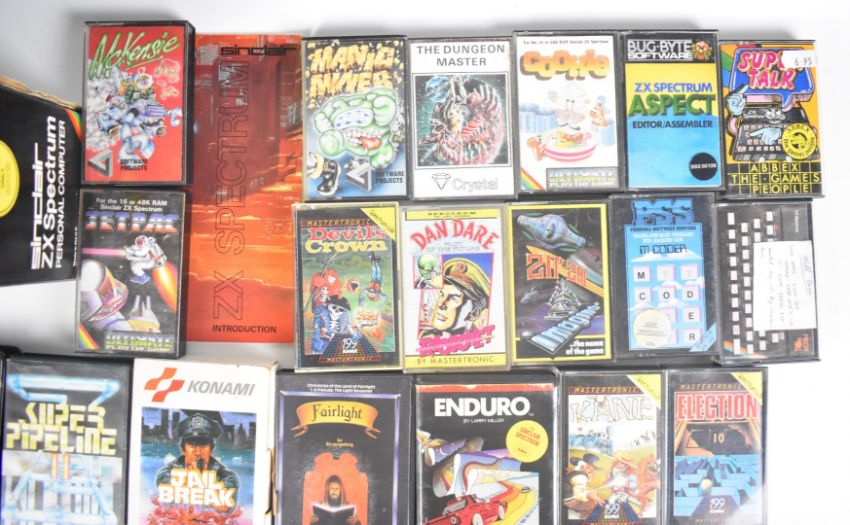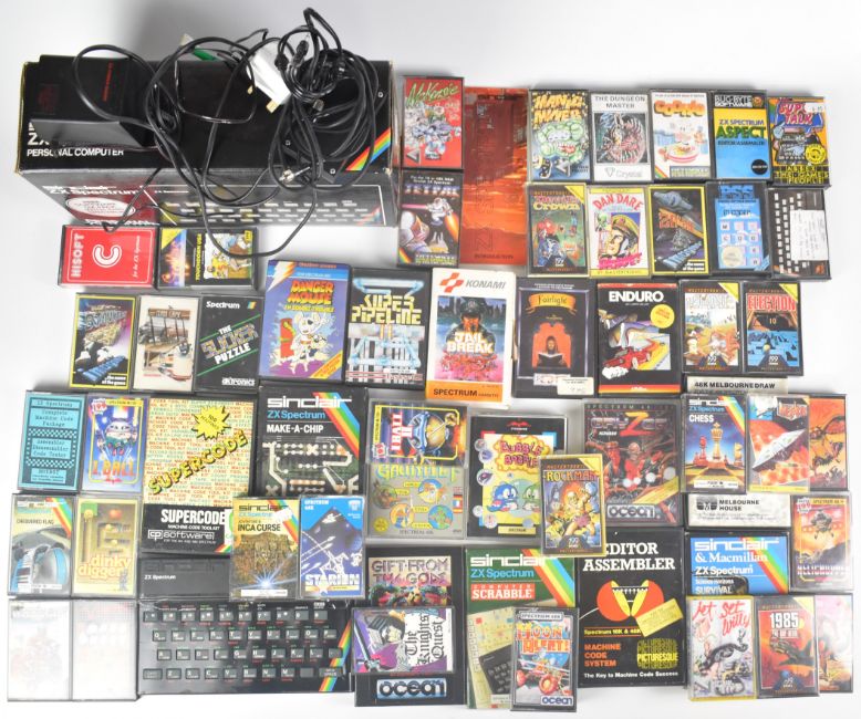 Sinclair 48K ZX Spectrum personal computer with power supply, instruction manual and a collection of games, in original box.