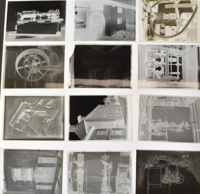 Over 100 glass plate negatives, mostly relating to industrial heritage, brewing etc, to include a machine with Waller & Co. London & Stroud to the frame, Cirencester Brewery Maltings, slides showing a cross section of Hall's Oxford Brewery, further malt houses, possible Lake District slides etc