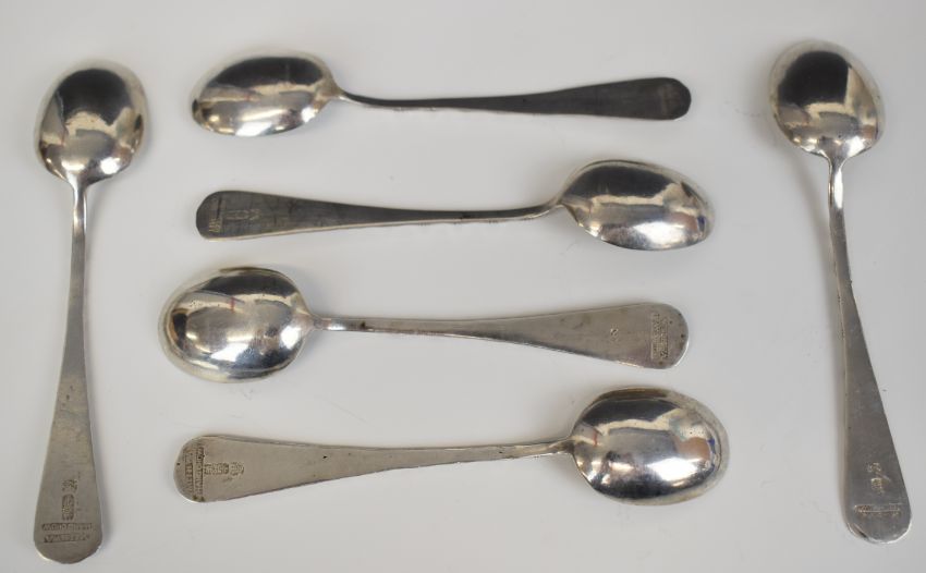 Set of six Chinese silver teaspoons with bamboo decoration to handles, with Chinese silver marks for Mei Hwa Hang Chow, length 11.5cm, weight 69g