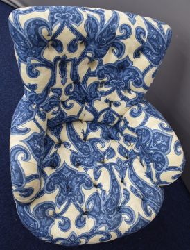 Victorian style armchair with deep buttoned seat and back, raised on turned front legs