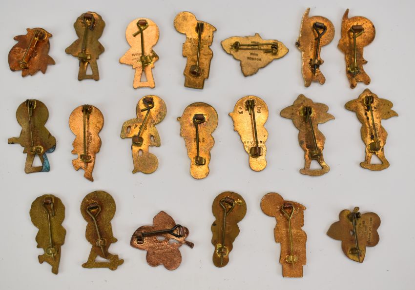 Twenty vintage enamel Robertson's Golden Shred and other advertising pin badges, including, lemons, strawberries and other fruit, football, tennis and lollipop man