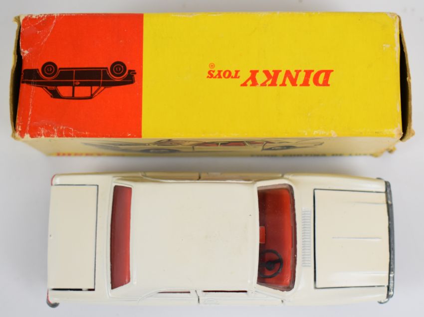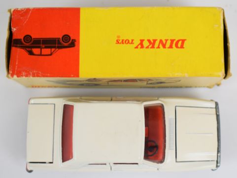 Dinky Toys diecast model Ford Cortina De Luxe with white body, red interior, silver hubs and opening doors, bonnet and boot, 159, in original box.