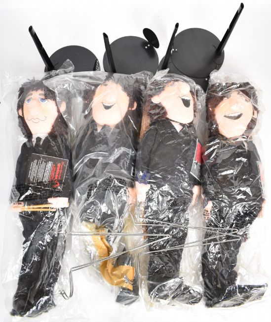 Four Beatles Forever Applause Dolls comprising John, Paul, George and Ringo complete with instruments, stands and original tags, 1987, Apple Corps Ltd.