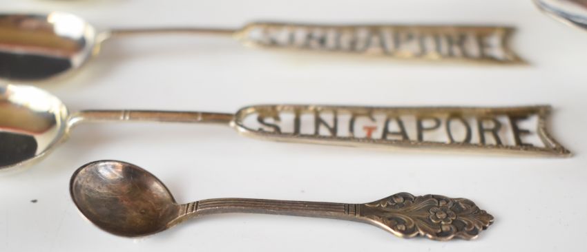 Fourteen Chinese white metal spoons comprising two sets of six marked 'Silver 90' and two salt spoons, 97g