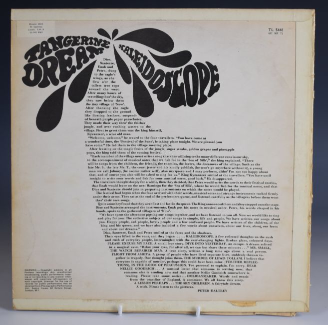 Kaleidoscope - Tangerine Dream (TL5448), record appears Ex with wear to cover on spine and name label to rear. From the estate of music journalist Miranda Ward