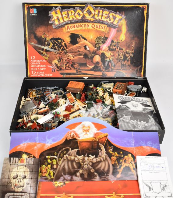 MB Games / Games Workshop Hero Quest 'Advanced Quest Edition' tabletop adventure board game, in original box with instructions, board, character sheets, dice, tokens and miniatures.