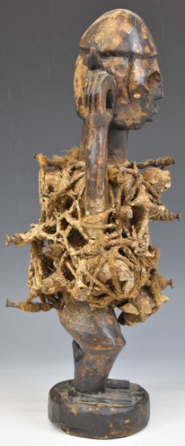 19th / 20thC African carved tribal fetish figure, Nkisi, Congo, 47cm tall.