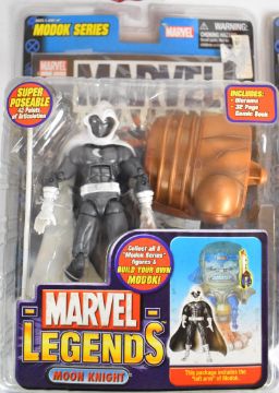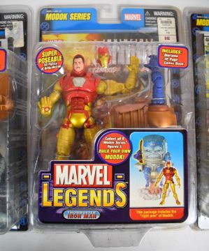 Three Marvel Legends Modok Series action figures comprising characters Moon Knight, Wasp and Thorbuster Iron Man, in original packaging, together with two 'build you own' M.O.D.O.K.