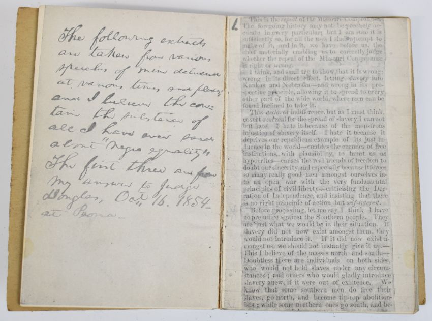 Abraham Lincoln His Book, A facsimile reproduction of the original with an explanatory note by J. McCan Davis published NY, McClure Phillips & Co. 1902 containing photographic news-cuttings, facs handwriting and notes, drab card covers in folding card wrap around and slipcase with printed labels