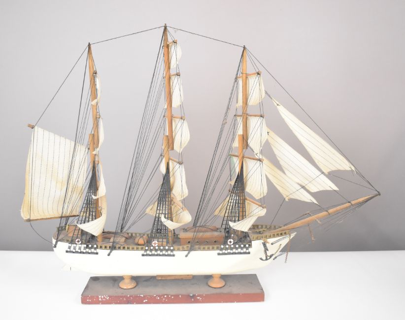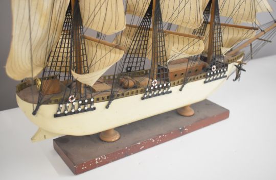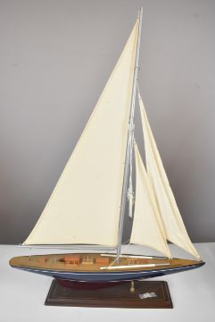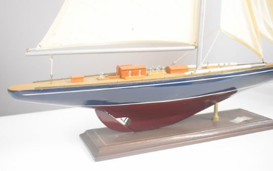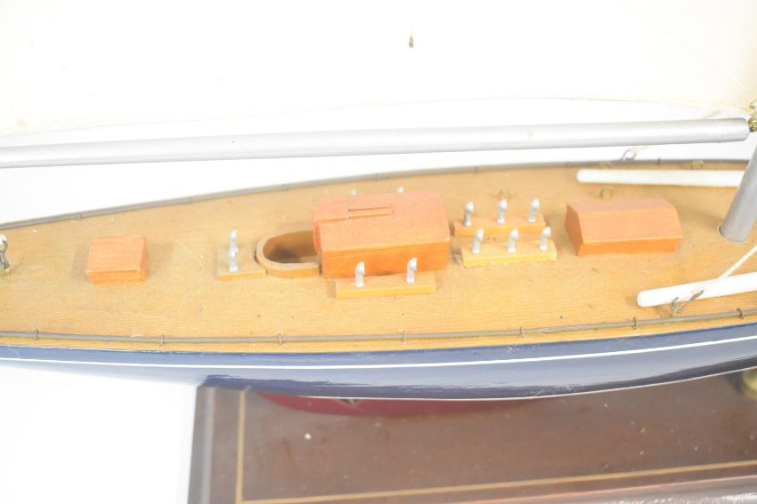 Three various model boats or ships, comprising a galleon, clipper or similar sailing ship and a racing yacht, height of tallest 86cm