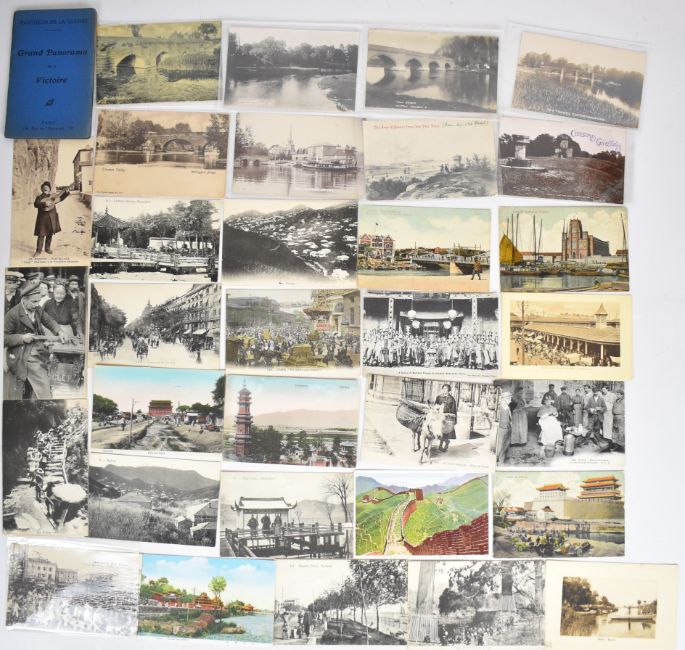 A collection of vintage postcards including Norway, Sweden, Paris street scenes, many bridges and ferries including Mersey, Streatley, Surbiton, Wargrave, Hylton, Eel Pie Island Hotel Twickenham, Matlock, Nice including carnival and further France section, paddle steamers and WW1 warships, high water Bosham, Daylesford, various Norwich ferries, Henley, Ross on Wye, Ireland including Killarney, Galway, Cork, Connemara, Waterford and Londonderry, Chinese / china including Kuling church, Hong Kong, Shanghai, Pekin, Hangchow, Ping Tso Gate, Nanking etc