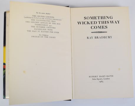 Ray Bradbury Something Wicked This Way Comes published Rupert Hart-Davis 1963 first edition, in silver lettered cloth with original colour illustrated dust-wrapper