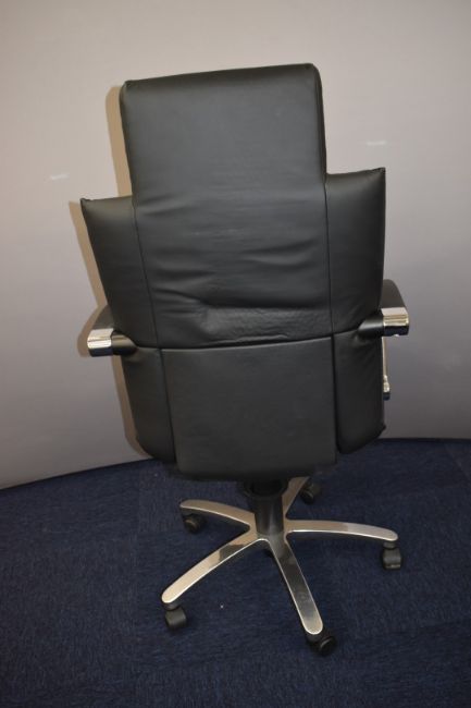 Pair of Sato office chairs with chrome arms and adjustable height and recline