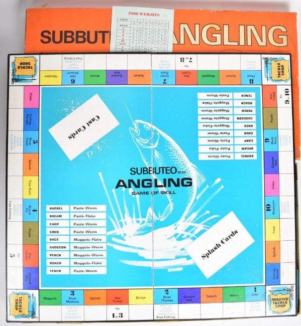 Subbuteo Angling board game in original box with board, cards, instructions etc.