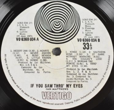 Ian Matthews - If You Saw Thro' My Eyes (VO 6360 034) record appears VG with wear to cover