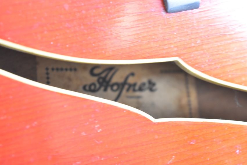 1963 Hofner Verithin electric guitar in cherry red, fitted with Bigsby style tremelo arm, serial number 2008, together with a Rocket 10 practice amp