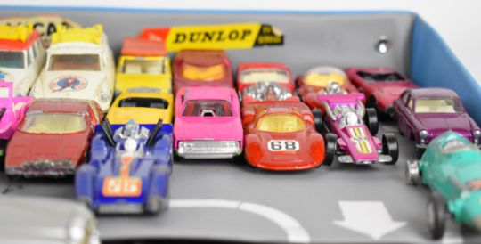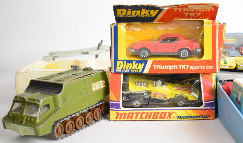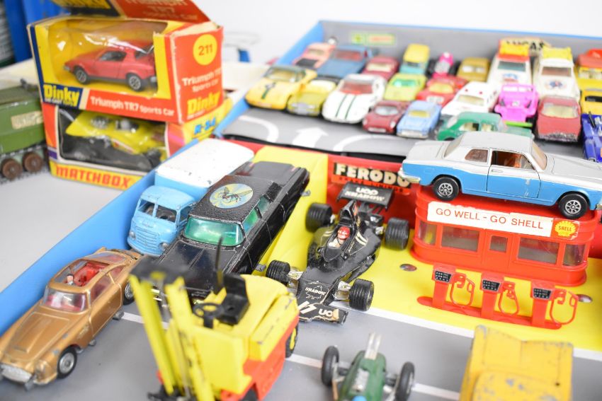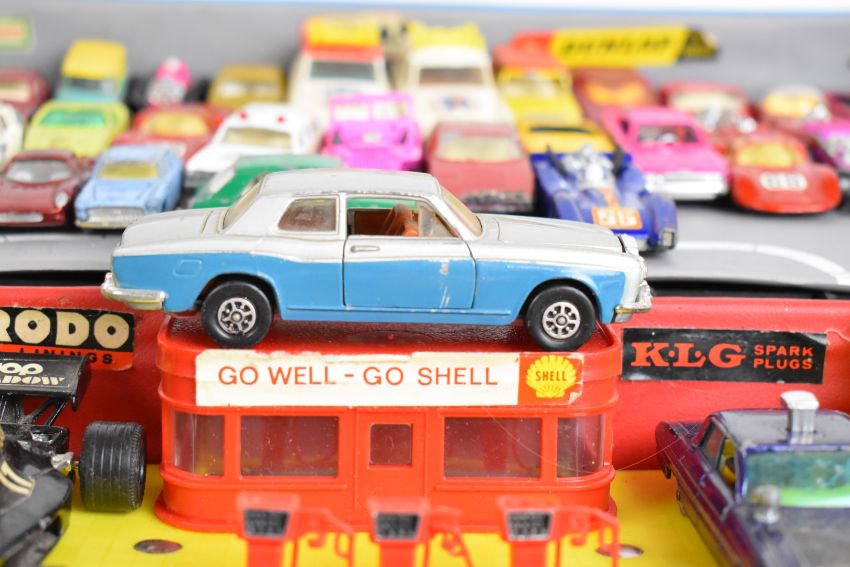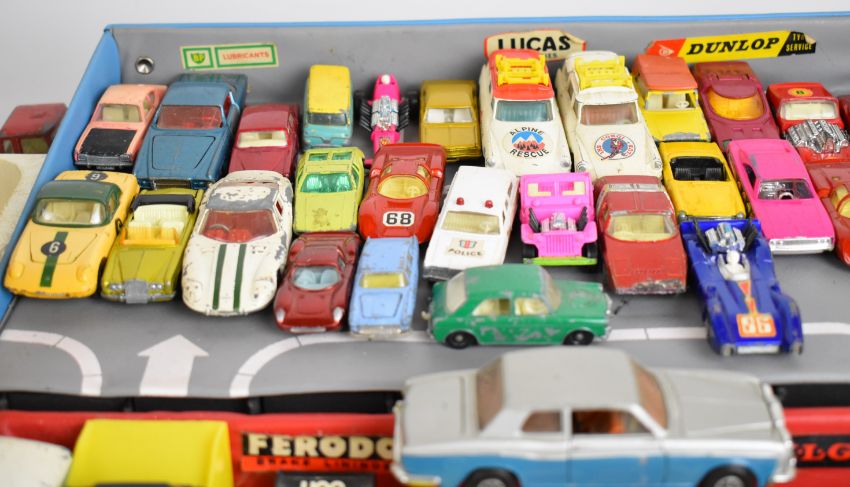 Corgi Tourist carry case, portable service station with roof parking and underground storage, together with a Simon Snorkel Fire Engine in original box 1127 and a selection of loose and boxed diecast model cars.